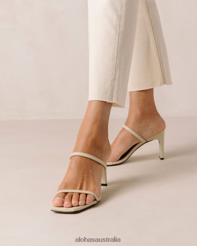 Beige leather two-strap mule sandals