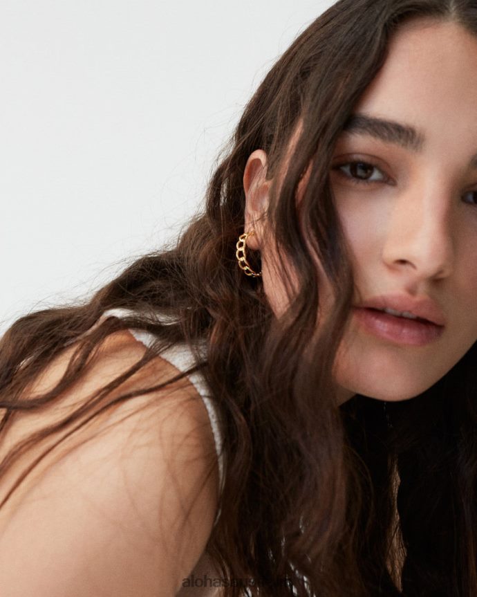 There’s basic hoops and there’s these – the Chain earrings are designed to stand out no matter what you are wearing. Crafted from gold plated silver, they are made up of interlocking oval links and feature butterfly fastenings. Defined by the unconventional shape, this shiny couple will have you thinking outside the (jewelry) box. Add them to your stack for a creative take on a well-loved classic.