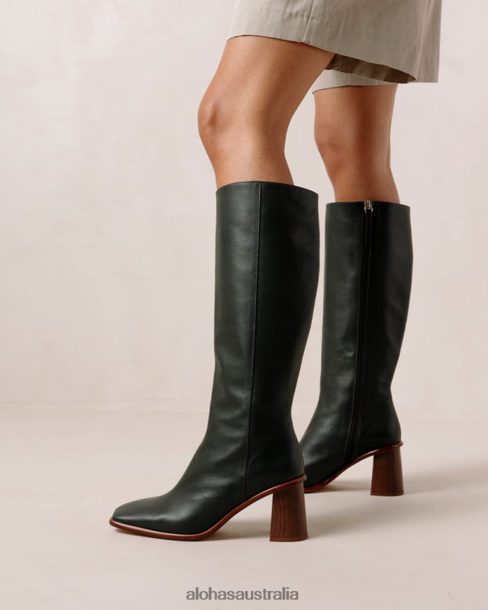 The iconic must-have high knees, now crafted from dark green leather. These timeless tall boots feature a squared toe and a side zipper for extra comfort. Their elongated block heel adds flattery and pizzazz to your strut. Expand your footwear rotation with a glamorous pair of East and take on colder days in style.