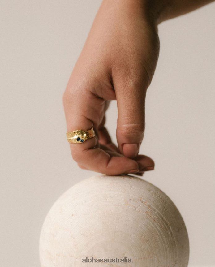 Hammered gold ring with blue crystals