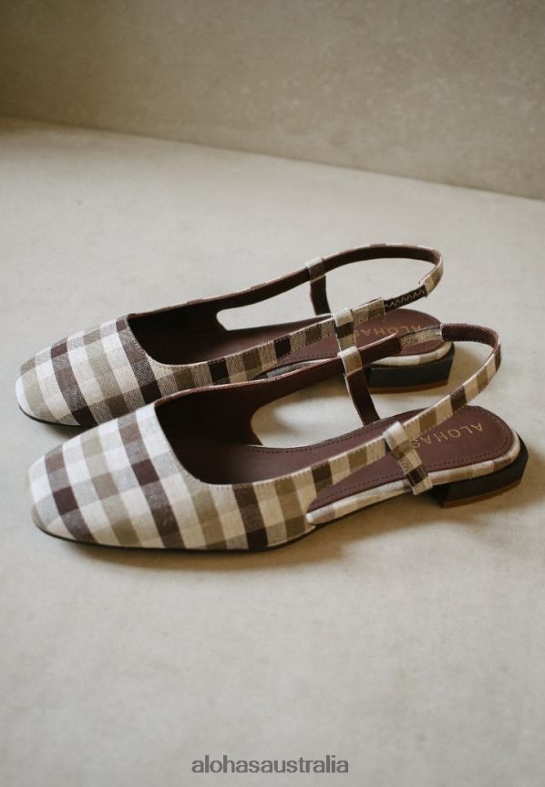 Alohas Women Holly Check – Brown Leather Mules Check Canvas Brown Print 60BH46503 Alohas Sandals Australia