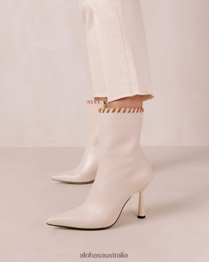 Equal parts effortless and polished, these super feminine ankle boots might look like a lot of work, but we promise they are surprisingly easy to pull off. Crafted from smooth white leather, they feature sharply pointed toes and slim heels that flare at the bottom, so you can wear them all day (or all night). The contrast detailing around the cuffs add interest and texture to their sleek, monochromatic silhouette.