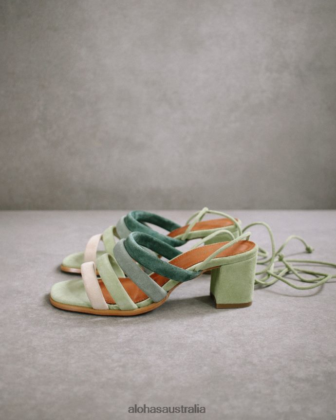 Alohas Women Letizia – Green Suede Sandals Shades Of Green 60BH46212 Alohas Sandals Australia