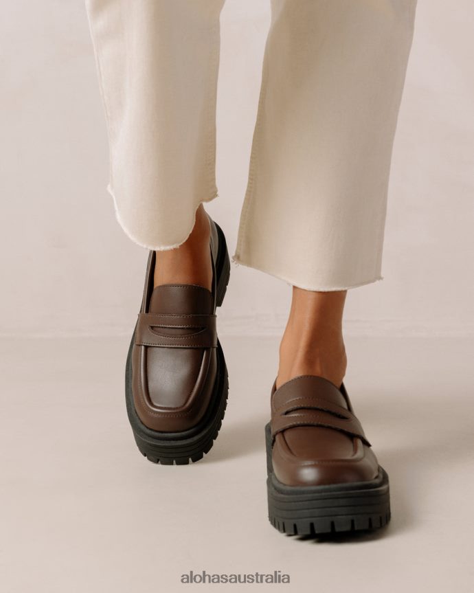 Brown vegan leather chunky loafers