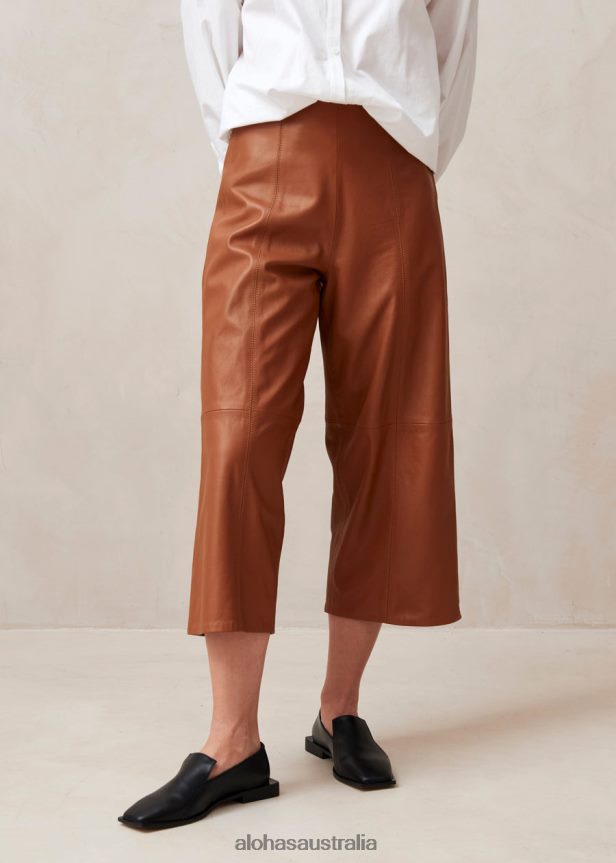 Brown leather wide-leg pants