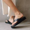 White and beige leather platform flip-flops