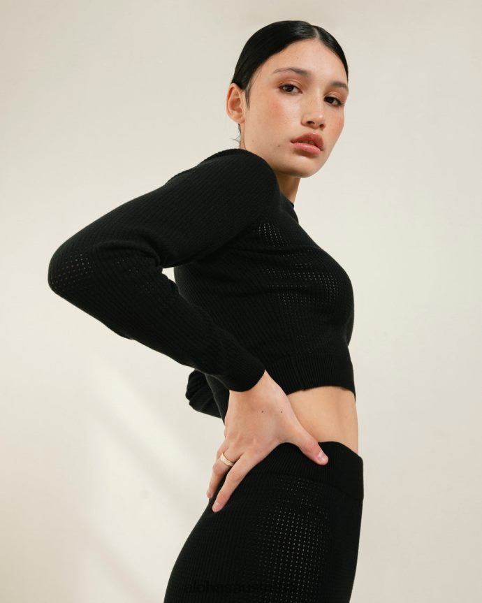 Designed for all the sporty(ish) ladies out there, Roy is your athleisure-inspired crop top with loads of fashion appeal. It’s cut from stretchy pointelle knit in a classic black hue and features ribbing around the collar, the bottom hemline and the cuffs. Wear it with the Rookie pants to match for whatever you consider exercise – yoga sessions, coffee runs and so much more.