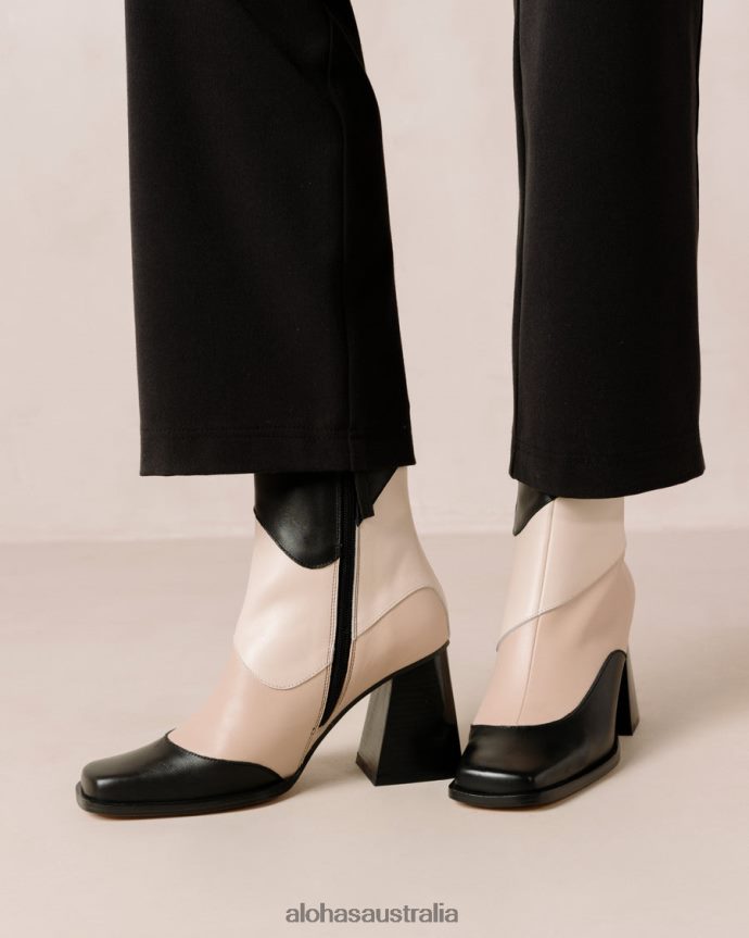 Alohas Women South Patchwork – Black and Beige Leather Boots Kaleidoscope Black 60BH46207 Alohas Handbags