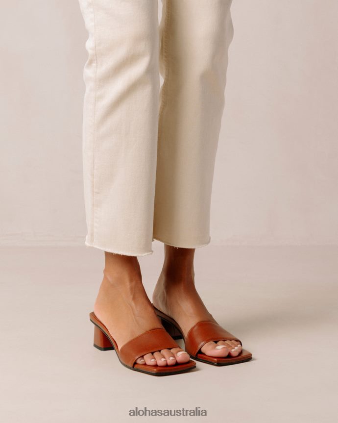Brown vegan leather mules with block heel