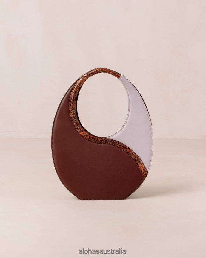 Alohas Women The O Venti Indo – Brown and Mauve Leather Bag Wine Burgundy Smokey Mauve 60BH461038 Alohas Handbags