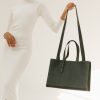 Crafted from brown vegan leather, this hard-working tote bag has been engineered to meet all your girl-boss needs. It has a spacious, rectangular shape that comfortably accommodates your laptop, while the internal flat pocket offers safe storage for your smallest essentials. The contrast topstitching traces its sleek outer shell and accentuates the structured silhouette for a clean look. Last but not least, It features different-length straps for multiple ways of wear.