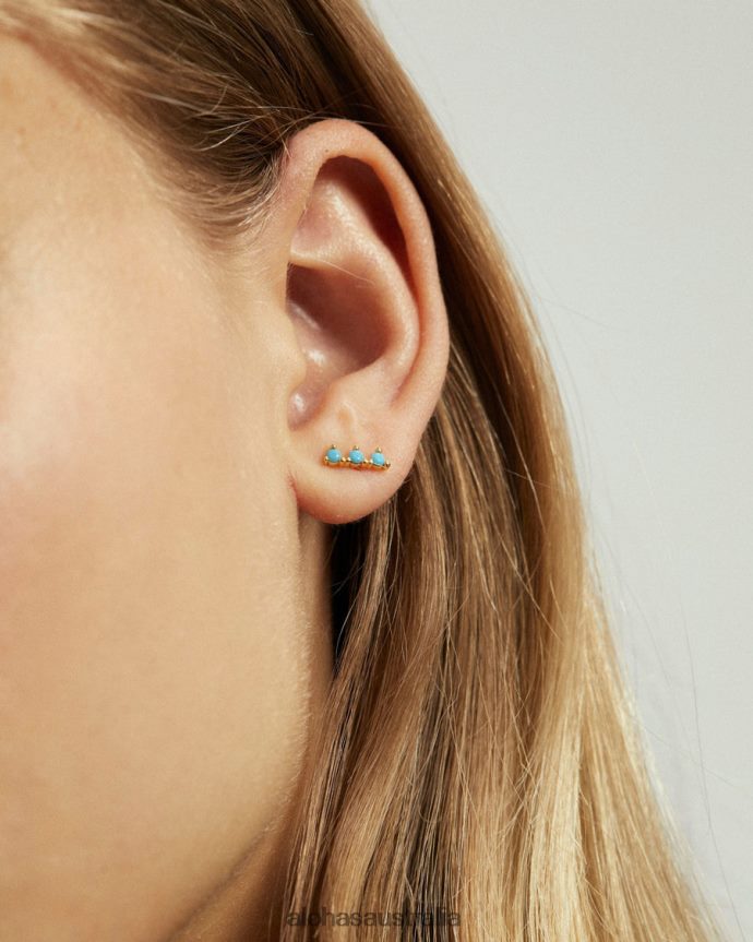 Introducing our stunning Triplet Piercings with Turquoise Blue Stone! These earrings are a must-have for any fashion-forward individual looking to add a pop of color to their outfit. The beautiful blue stone is set in a delicate gold-plated design, making it the perfect addition to any jewelry collection. These blue earrings are versatile and can be worn for any occasion, from a casual day out to a formal event. Shop now and elevate your style with our Triplet Piercings!