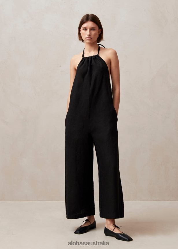 Alohas Women Yona – Black Linen Jumpsuit Black 60BH46604 Alohas Australia