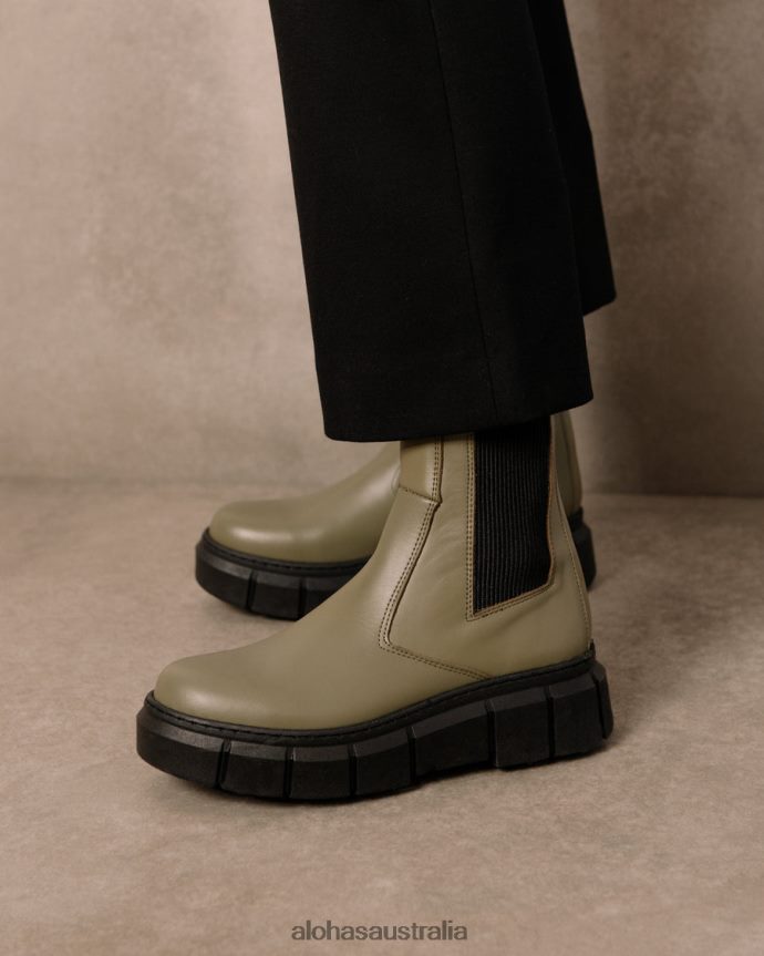 Sassy and glamorous, these classy combat boots are made for stomping around in style. Their polished green leather silhouette features tonal stitching and practical elasticated side panels for easy on-and-off. Set atop chunky platform soles, the Armor will instantly up the cool factor whatever you are wearing.