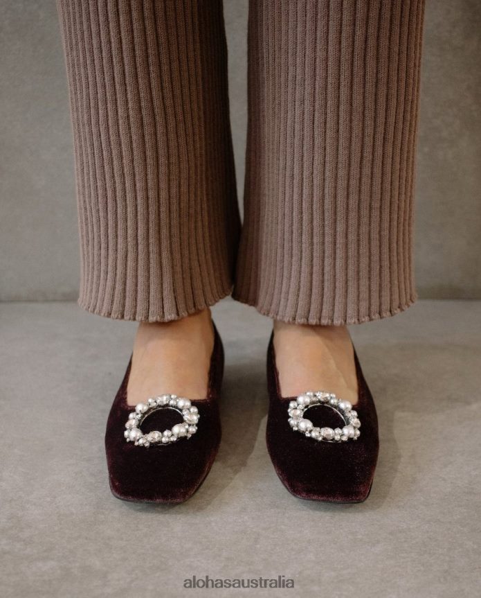 Alohas Women Bella Crystal – Brown Leather Flats Velvet Coffee Brown 60BH46520 Alohas Australia