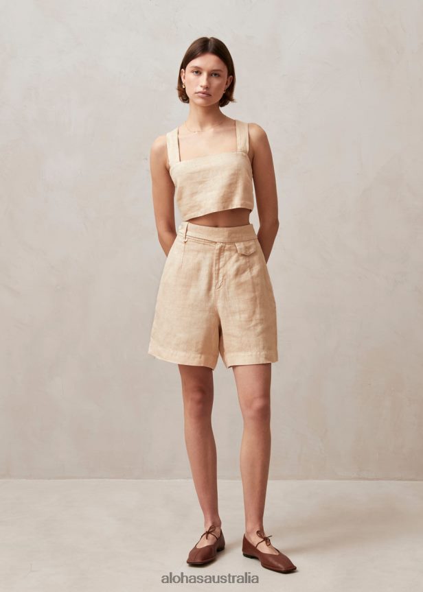 Put-together *and* comfortable – that’s our Boa beige linen shorts for you. Grazing the tops of tights, this summer-ready style makes a great vacation staple, especially if worn together with the matching Rai top. They sit high on the waist and feature a side adjuster for a flawless fit. Bonus points for looking best when crinkled, so don’t worry about them looking pristine as they come out of your carry-on – it’s all part of the game.