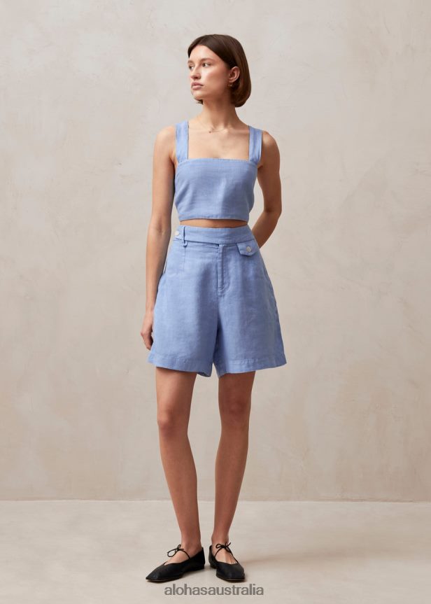 Put-together *and* comfortable – that’s our Boa blue linen shorts for you. Grazing the tops of tights, this summer-ready style makes a great vacation staple, especially if worn together with the matching Rai top. They sit high on the waist and feature a side adjuster for a flawless fit. Bonus points for looking best when crinkled, so don’t worry about them looking pristine as they come out of your carry-on – it’s all part of the game.