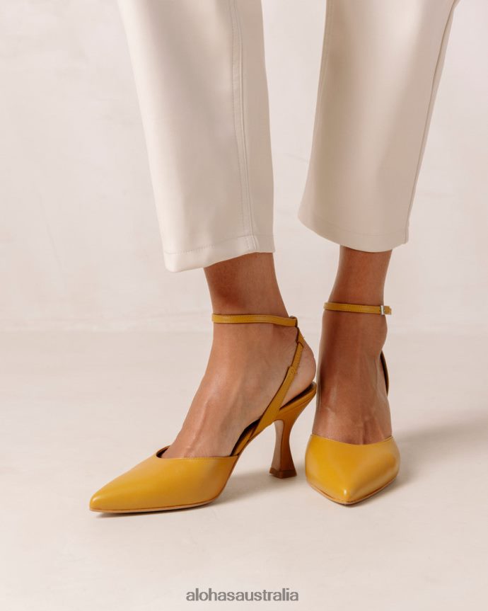 Alohas Women Cinderella – Yellow Leather Pumps Marigold Yellow 60BH4686 Alohas Sandals Australia