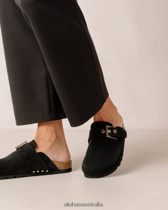 An irresistible pair of rounded-toe clogs, crafted from black suede for a luxurious feel. These fashion-forward backless mules are versatile and easy to style, so you’ll get plenty of wear out of them. They feature a glamorous gold-tone buckle and rest on ridged flat soles. Cozy is the perfect outdoor-indoor shoe for those who seek everyday comfort at their feet.