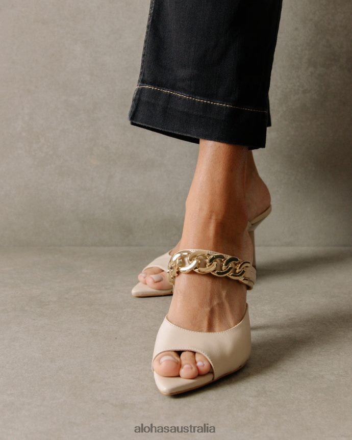 Slender stilettos, pointy toes and shiny hardware? The Daisy mules have sass written all over them. Crafted from white leather, they feature curved open-toe vamps and arch straps molding to the instep. The lightly flared heel provides a generous yet manageable 8.5cm lift, which is kind to your feet. Wear yours with confidence and plenty of attitude.