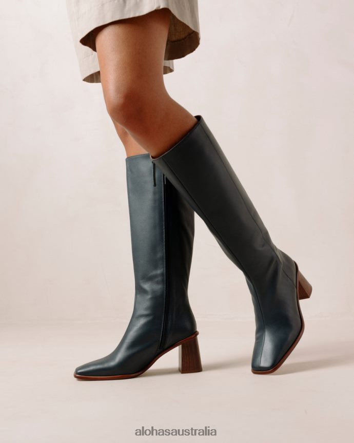 The iconic must-have high-knees, now crafted from blue leather. These timeless tall boots feature a squared toe and a side zipper for extra comfort. Their elongated block heel adds flattery and pizzazz to your strut. Expand your footwear rotation with a glamorous pair of East and take on colder days in style.