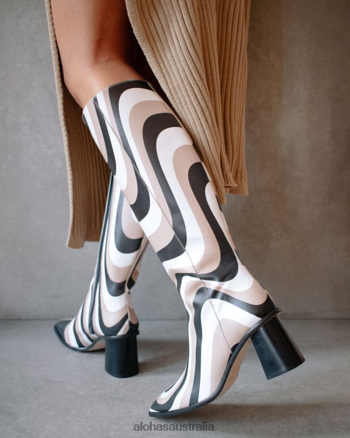 These tall boots features a black stone upper with a beige print design, adding a touch of elegance to any outfit. The comfortable and breathable interior will keep your feet feeling good all day long, while the durable sole provides excellent traction and stability. Whether you’re dressed up for a night out or running errands, this shoe will keep you looking and feeling great. So why wait? Treat yourself to a pair of East Kaleidoscop shoes today!