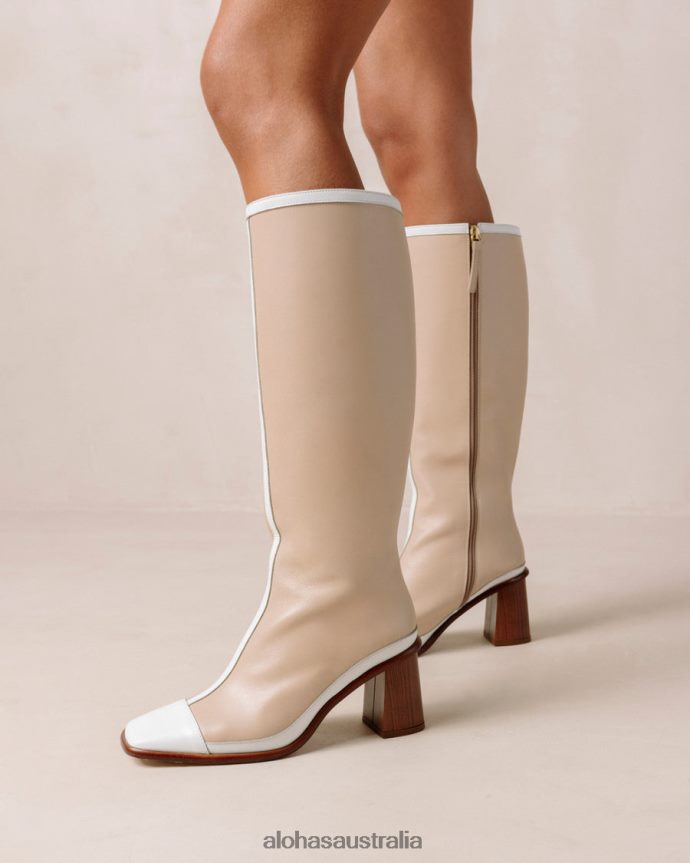 Our iconic, must-have knee-highs, now oozing authentic retro appeal. Crafted from beige leather, these vintage-inspired boots feature white squared toecaps and a side zipper for extra comfort. Get legs for days thanks to the lengthening contrast stripe down the front of the shoe, while the tall block heel adds flattery and pizzazz to your strut. Winter footwear doesn’t get more glamorous than a pair of East – they are an absolute staple to take on colder days in style.