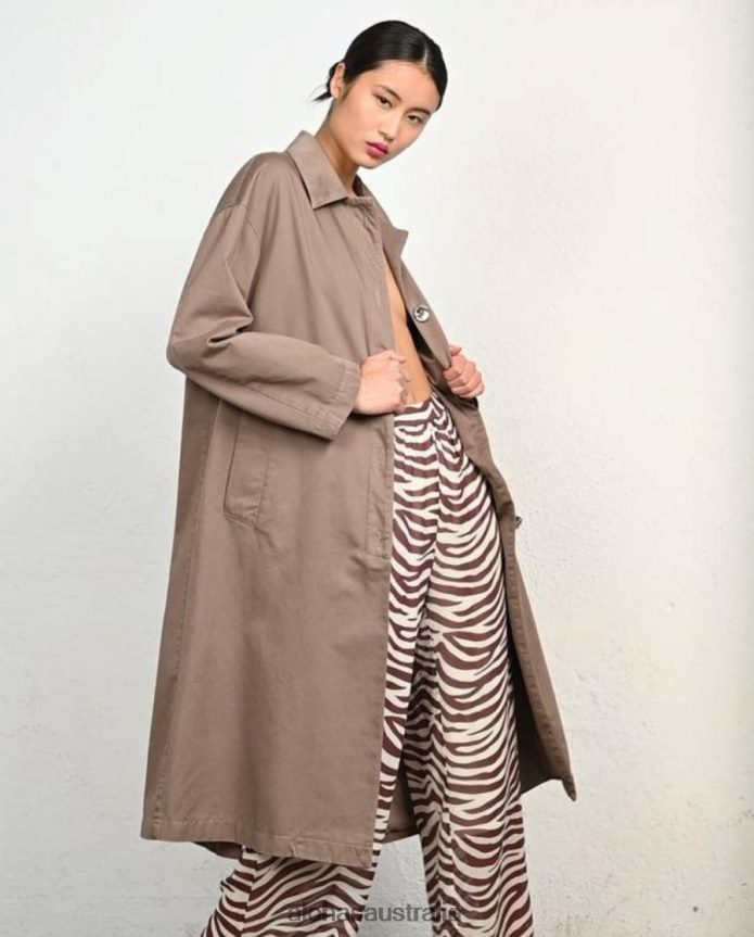Introducing the Flash Trench Coat in Nutmeg Brown from Alohas. This versatile coat is made from high-quality materials and features a classic design that will never go out of style. With its sleek silhouette and neutral color, it’s the perfect addition to any wardrobe. Pair it with a black one shoulder crop top for a chic and sophisticated look. Order now and elevate your fashion game!