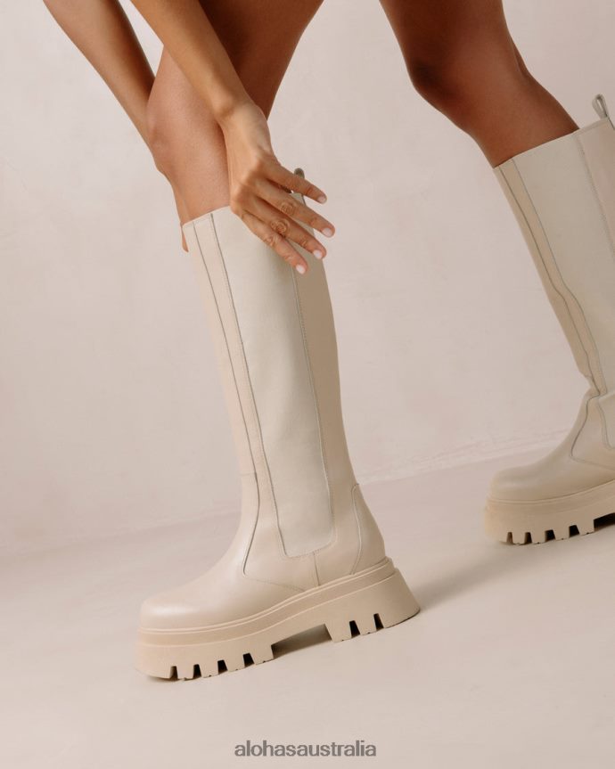 White leather riding boots with track soles