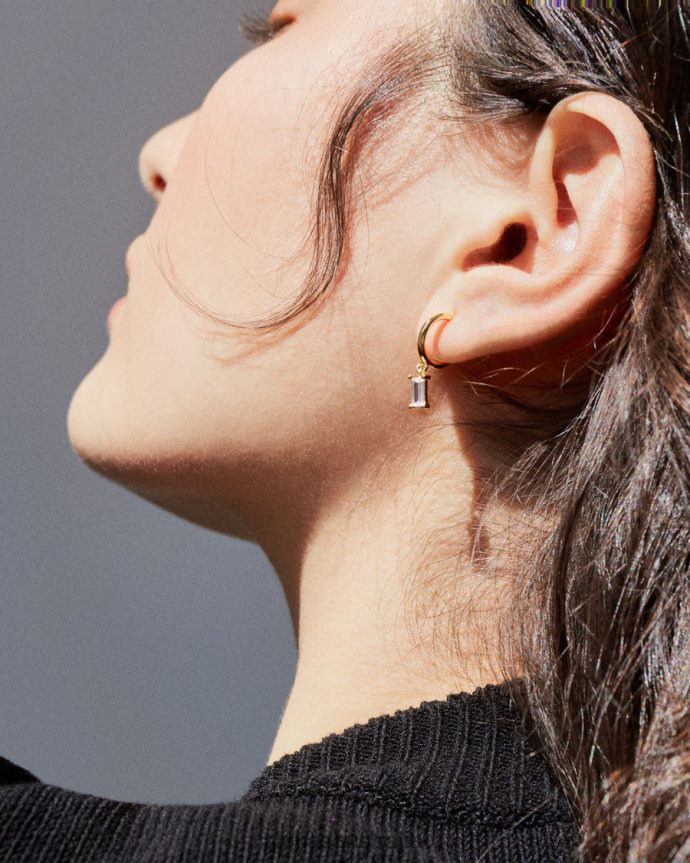Small details, big impact – these tiny but mighty crystal hoops are guaranteed to live up to your jewelry expectations. They are cast from sterling silver in a dainty huggie shape and anchor high-shine white gemstones that gently move with you. An easy way to incorporate some sparkle into your everyday wardrobe and bring your outfit to life.