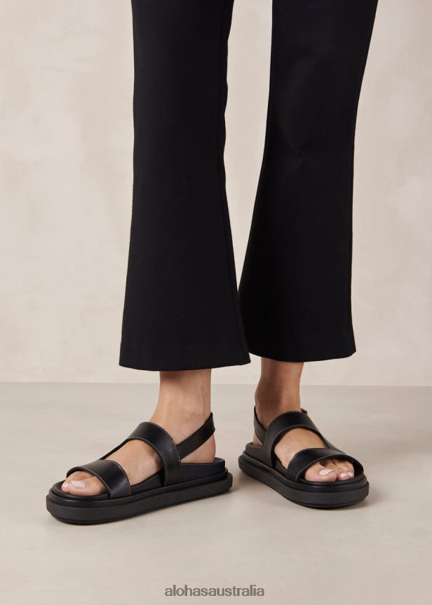 Alohas Women Lorelei – Black Leather Sandals Black 60BH46322 Alohas Australia