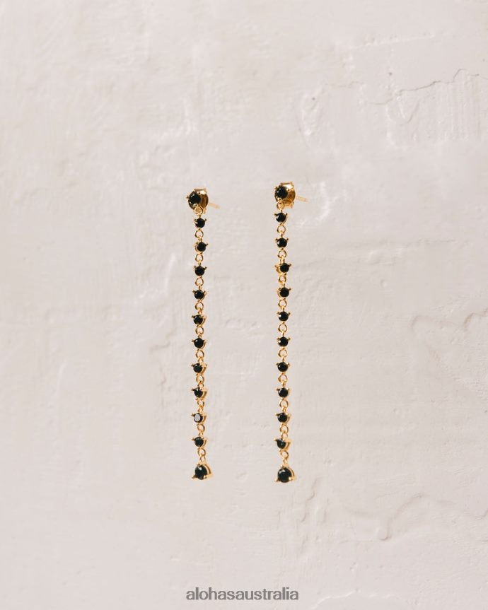 Gold chain drop earrings with black crystals