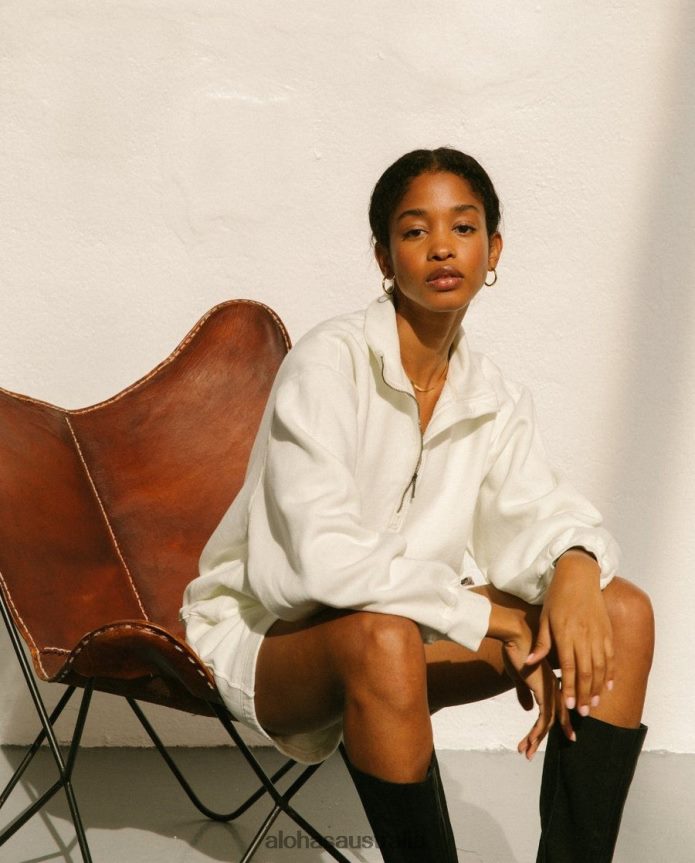 If cute leisurewear is your vibe, the Macchiato white sweatshirt will fit seamlessly into your wardrobe. Made from 100% cotton, it has a practical half-zip neckline and ribbing at the cuffs for a cool sportswear feel. It will keep you comfortable on early morning (coffee) runs and lazy days alike.