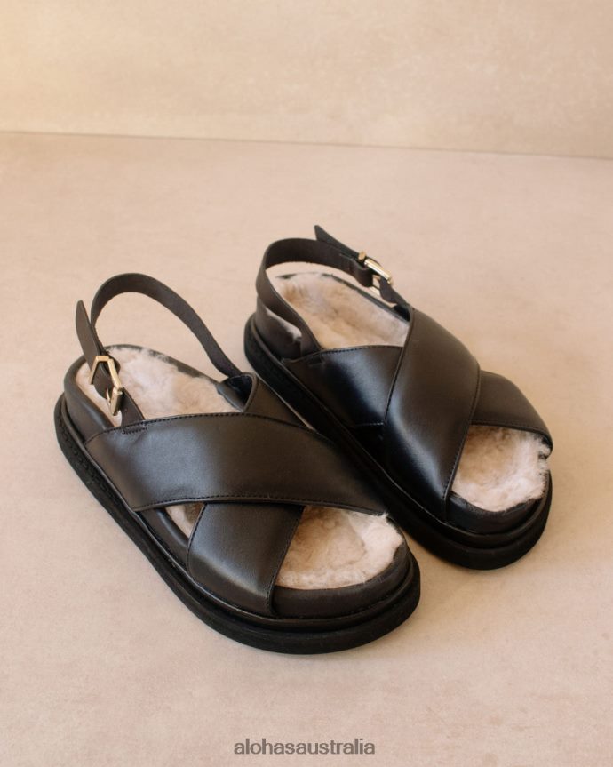 Furry black sandals for cozy and stylish looks