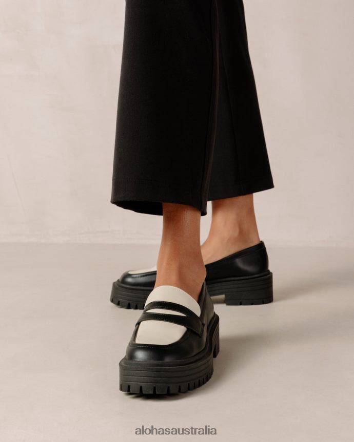 Meet the ultimate chunky loafer from our vegan line. Mask is crafted from black & white faux leather and topped off with mocassin stitching, penny-bar straps and thick rubber track soles. Designed to be worn in between seasons with anything from skinny jeans to tailored pants on repeat.