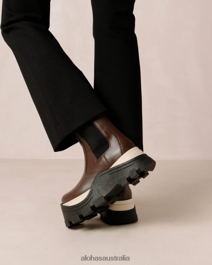 Brown leather mid-calf boots with platform soles