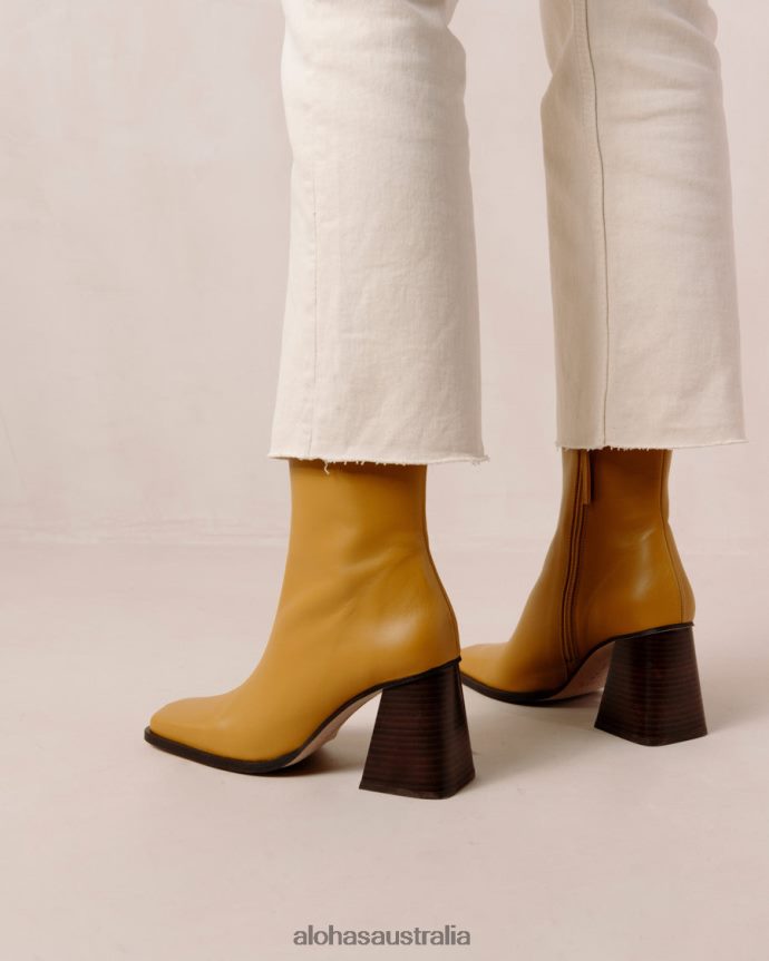 Yellow leather ankle boots with block heel
