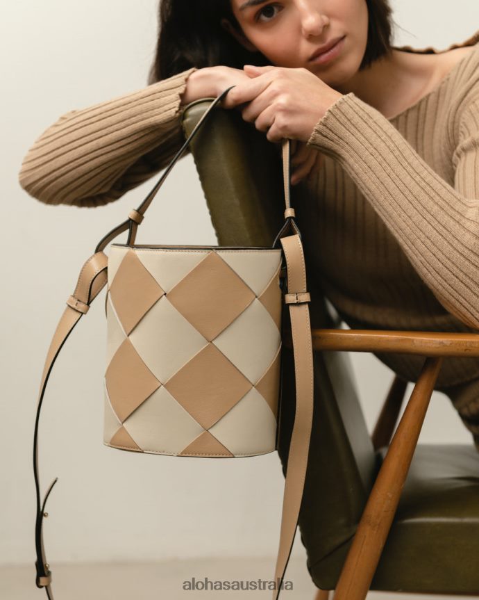 A strong and modern interpretation of the ever so popular bucket trend, the U is the structured, geometric-inspired bag you’ll want to carry everywhere. Crafted from white and beige leather to a compact cylindrical shape, it features both a top handle and a detachable crossbody strap. The fun checkered pattern and embossed ALOHAS logo complement the style. Use the inner drawstring pouch to store your smallest essentials.