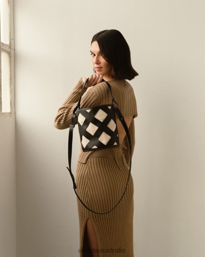 A strong and modern interpretation of the ever so popular bucket trend, the U is the structured, geometric-inspired bag you’ll want to carry everywhere. The smooth black leather shell is artfully cut in the shape of a “waffle pattern” that shows the cotton lining. It features both a practical top handle and a detachable crossbody strap, while the embossed ALOHAS logo complements the style beautifully. Use the inner drawstring pouch to store your smallest essentials.