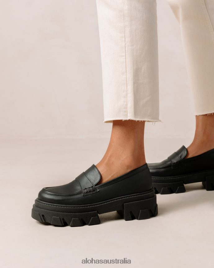 Black vegan leather chunky loafers