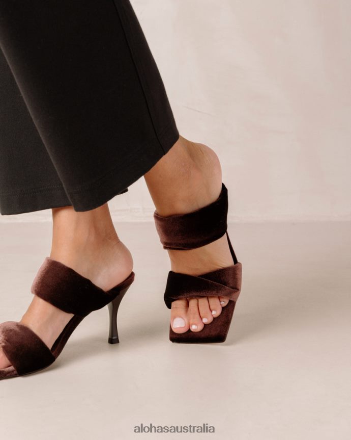 Give a twist to your daily attire with a sophisticated footwear choice. Crafted from sultry velvet in a gorgeous deep brown shade, these sleek square-toe mules rest on fluted stiletto heels with two padded straps that snugly hug the foot. Their beauty lies in their minimal silhouette and all-round versatility – team yours with anything from cocktail dresses to denim for the chicest take.
