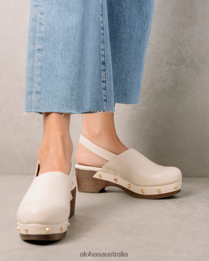 White leather clogs with wooden heel