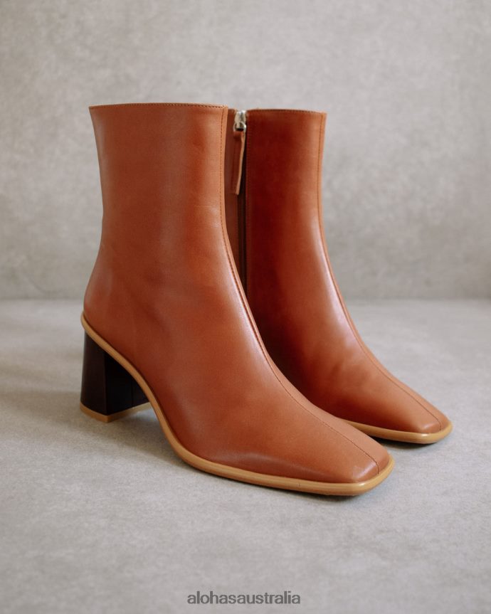 Brown leather ankle boots with contrast block heel