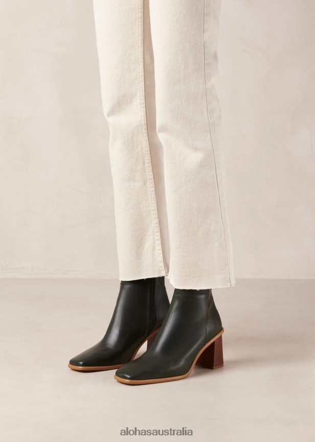 Dark green leather ankle boots with block heel