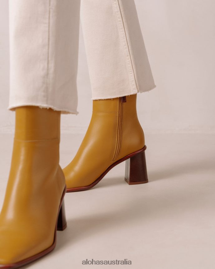Yellow leather ankle boots with contrast block heel