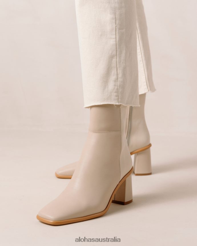 Alohas Women West – White and Beige Leather Boots Stone Beige Cream 60BH46340 Alohas Australia