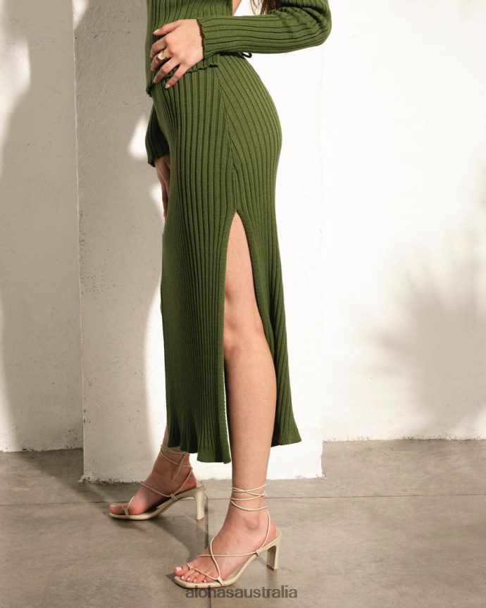 Green cotton ribbed knit skirt