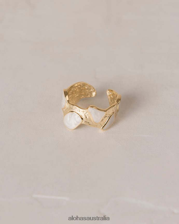 Made from gold plated 925 silver, the Wonderwall ring is designed to sit on your finger in a perfectly “imperfect” shape inspired by natural beauty. It is lightly hammered to create a cool textured finish and set with multiple white gemstones paved along the band. The chunkier silhouette pairs nicely with thinner styles to create your own personal stack.